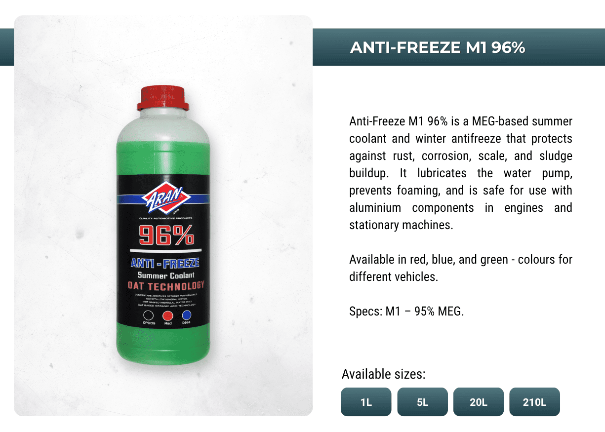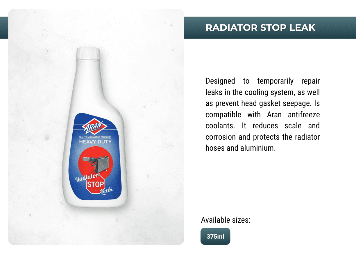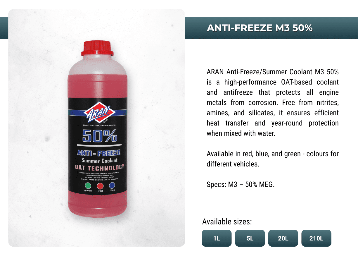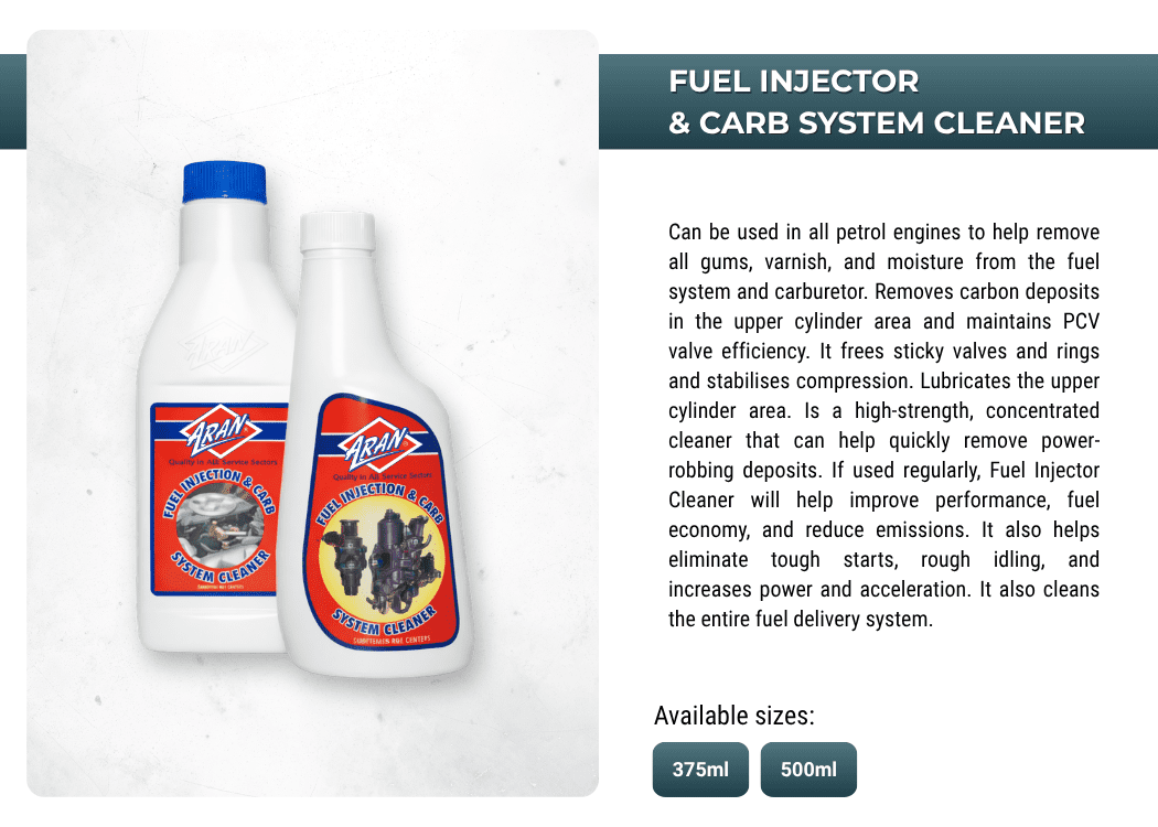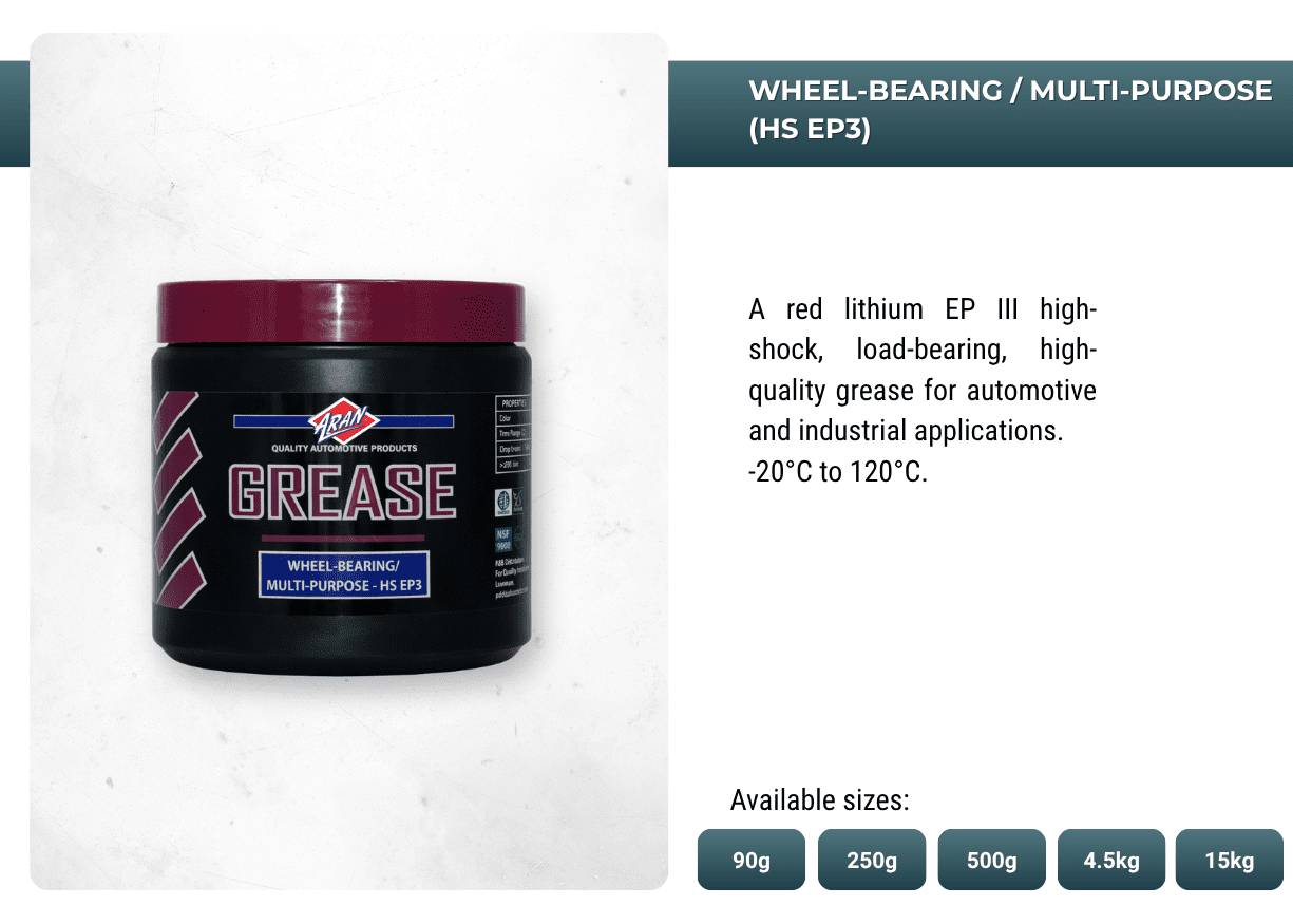 Powering performances with ARAN's extensive range of automotive and industrial additives, lubricants, sprays, anti-freeze, oils, greases, de-greases and more.