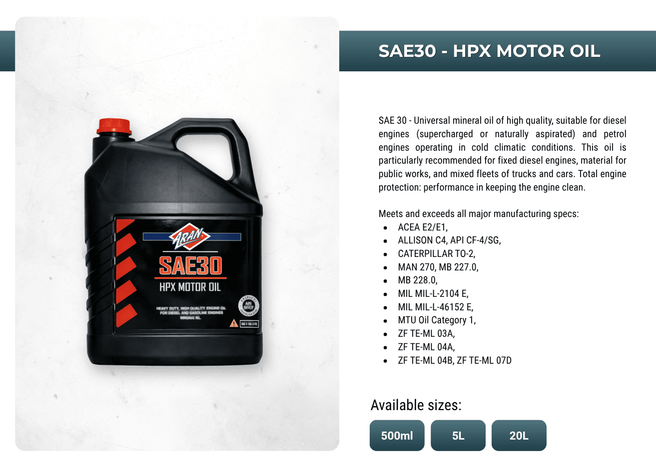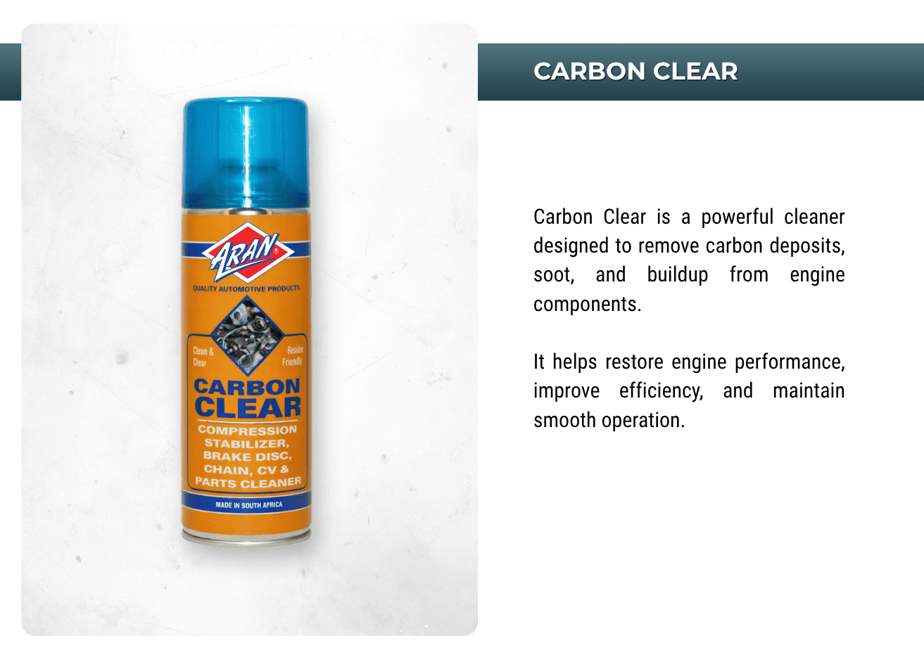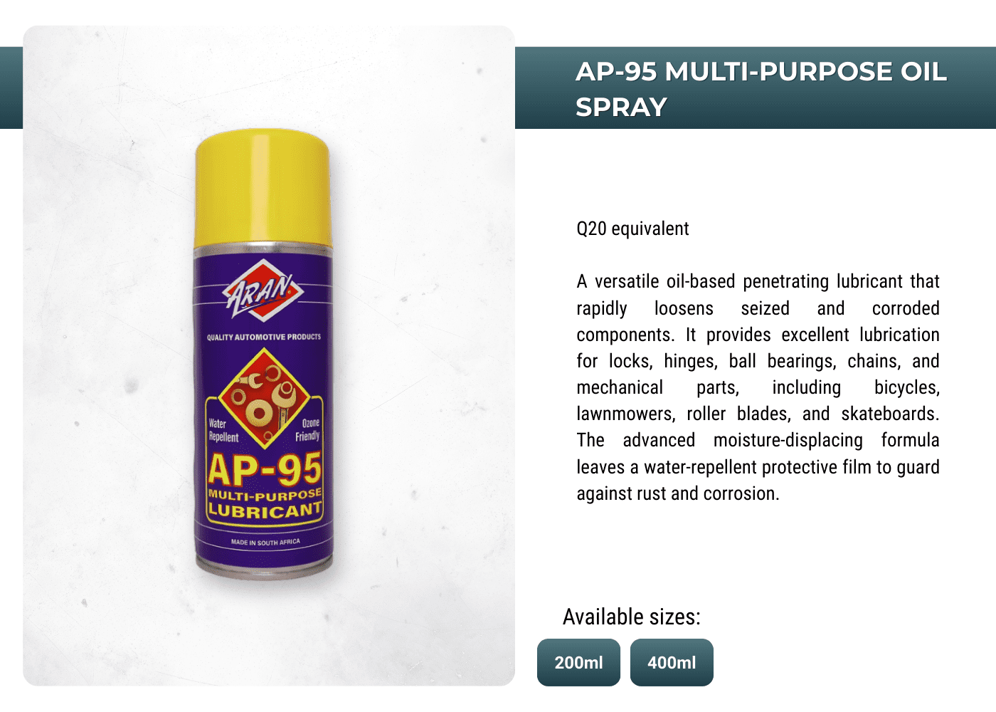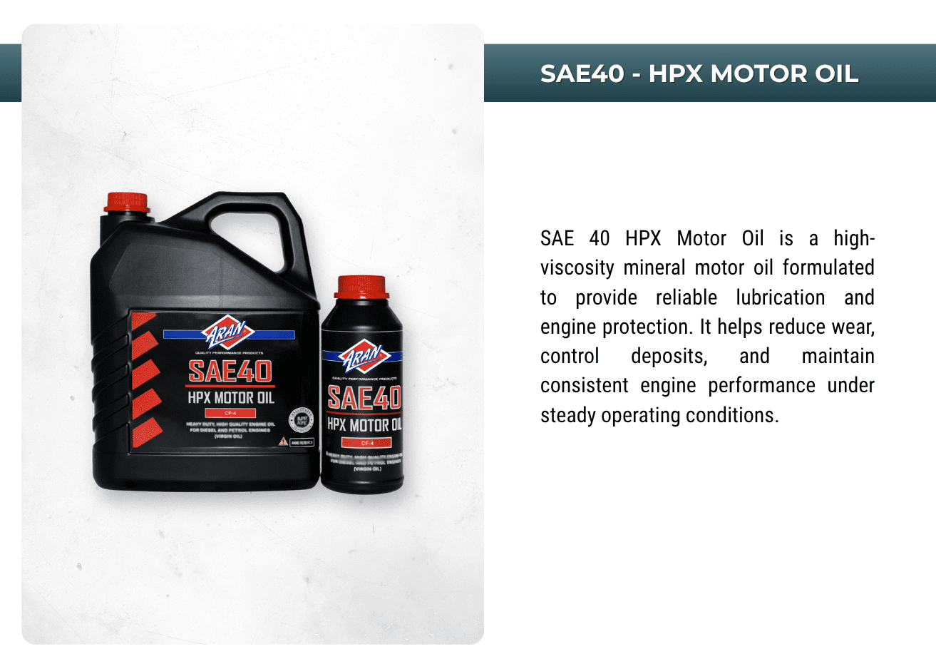 Powering performances with ARAN's extensive range of automotive and industrial additives, lubricants, sprays, anti-freeze, oils, greases, de-greases and more.