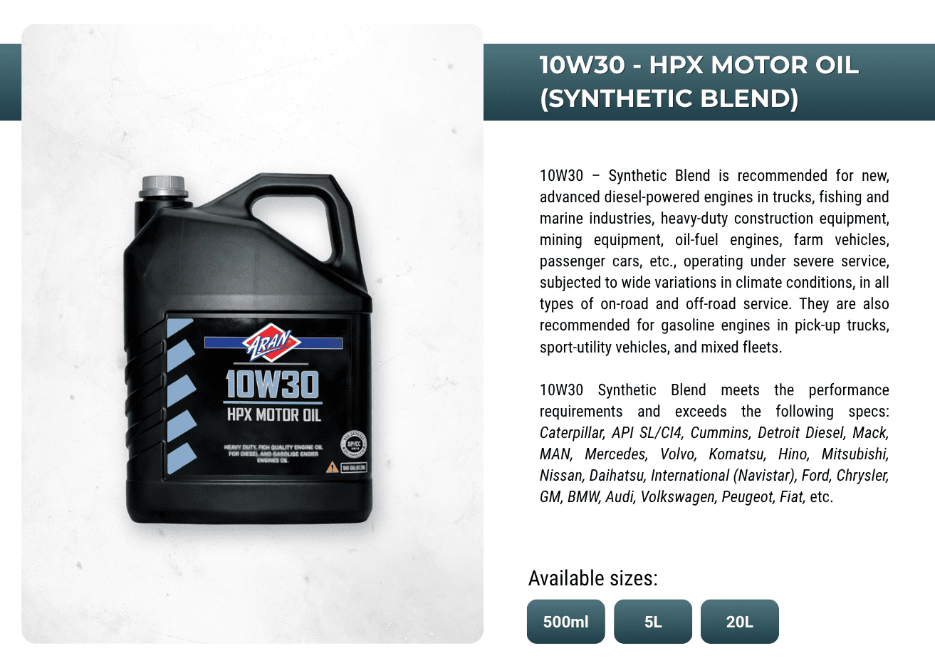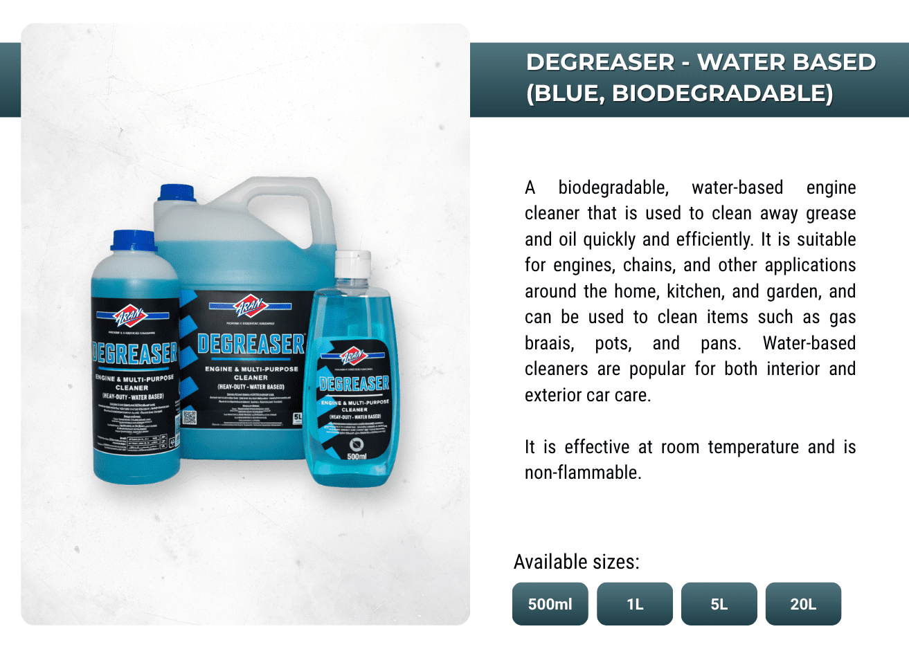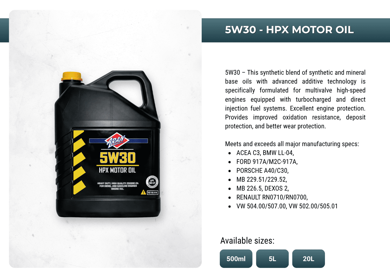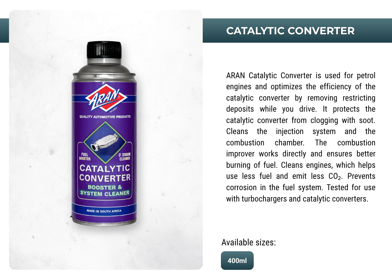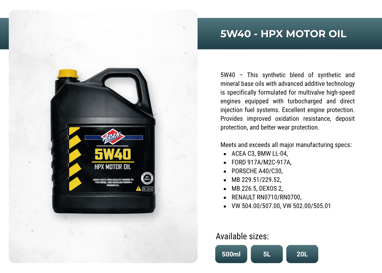 Powering performances with ARAN's extensive range of automotive and industrial additives, lubricants, sprays, anti-freeze, oils, greases, de-greases and more.